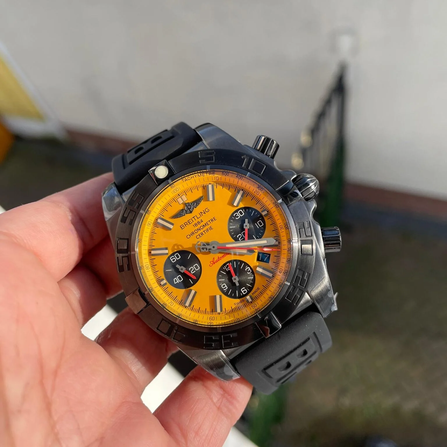 5 reviews for Chronomat 44mm Blacksteel GF 1:1 Special Edition Yellow Dial on Black Rubber Strap A7750