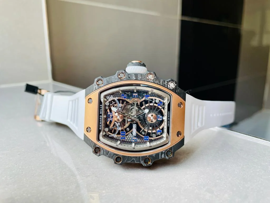 Paired with a clean white rubber strap for sport-luxury comfort, the RMF edition delivers exceptional wrist presence, precision detailing, and premium materials. Built for collectors who value innovation and exclusivity, this timepiece offers show-stopping aesthetics with reliable performance.