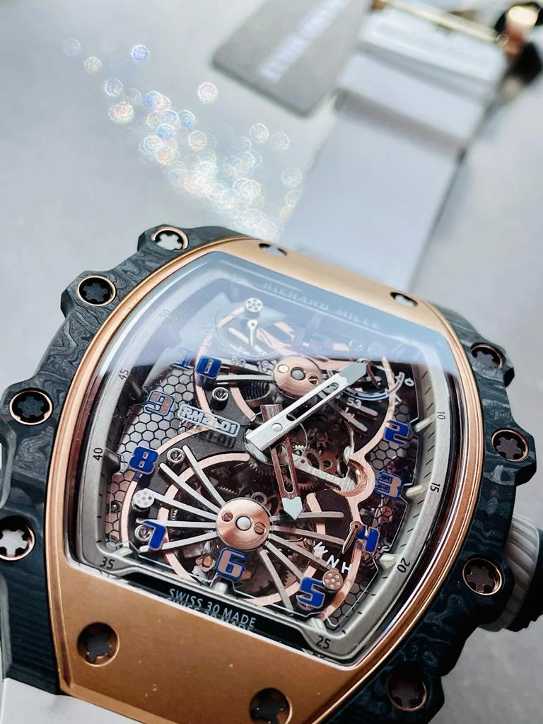 The RM21-01 RG Tourbillon RMF Best Edition is a masterpiece of avant-garde horology, blending bold architecture with elite craftsmanship. Featuring a striking rose gold (RG) case and an open skeleton dial, this model highlights the mesmerizing tourbillon display and intricate movement finishing.