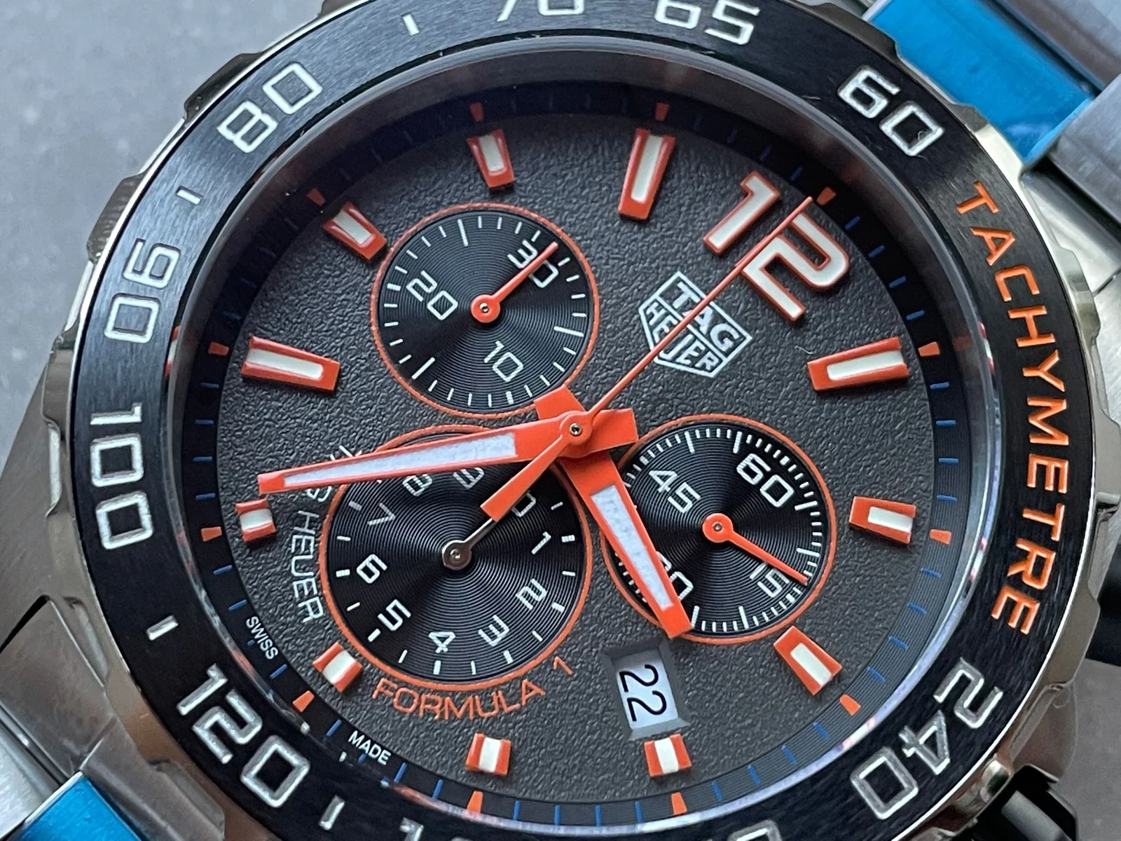 The TAG Formula 1 Chronograph CAZ101AH.BA0842 OGF Best Edition delivers bold motorsport energy with everyday luxury performance. Featuring a sporty grey dial accented with vibrant orange details, this 43mm chronograph offers excellent legibility and modern racing-inspired design.